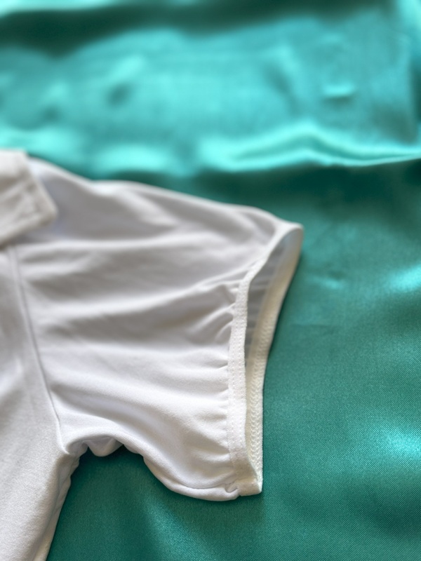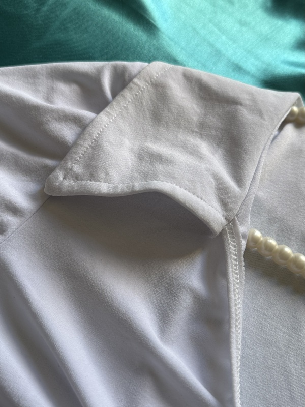 ● یقه و آستین: یقه آزاد، آستین کوتاه / فرم کراپ‌ تاپ گره‌ای