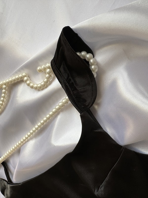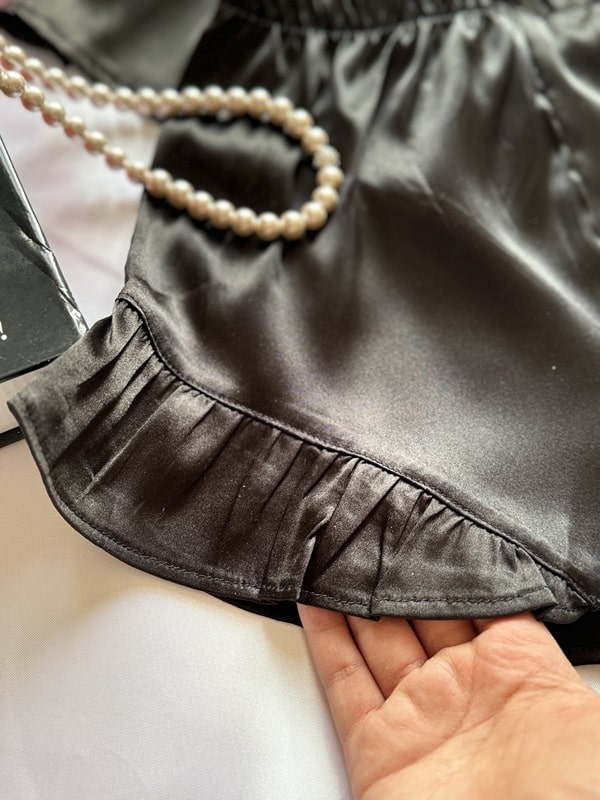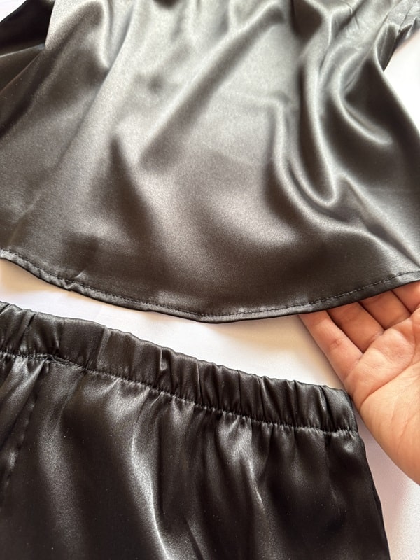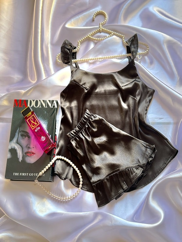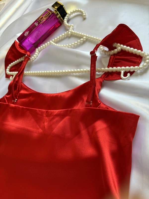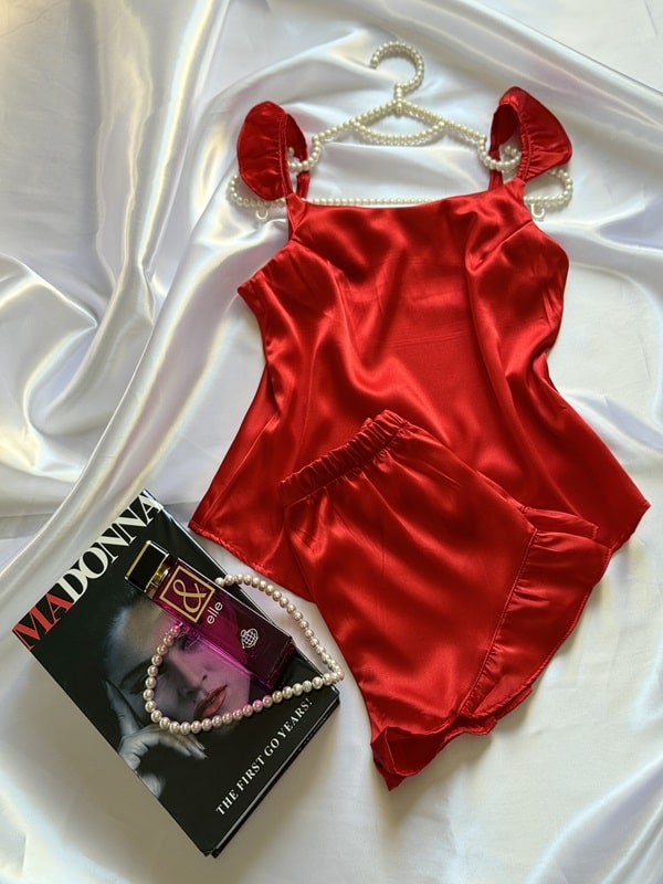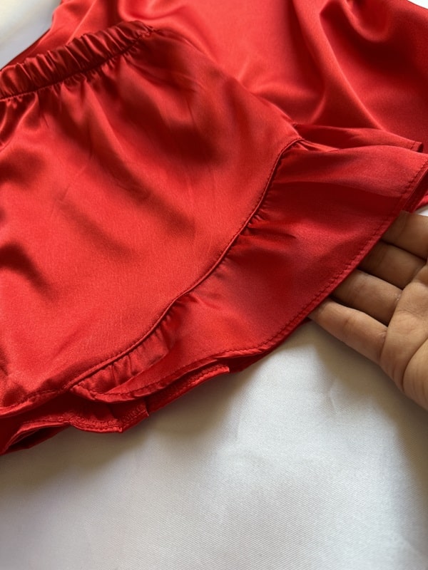 لباس خواب ساتن زنانه شامل یک تاپ ظریف ساتن و یک شورتک چین‌دار است. طراحی این لباس خواب ساتن زنانه با محوریت شب‌های رویایی، راحتی در خانه و ظاهری فانتزی و شیک انجام می‌شود. ترکیب رنگ‌های کلاسیک مشکی و قرمز، مدل شورتک لبه‌دار و تنخور جذب و جذاب، این مدل را به یکی از بهترین گزینه‌ها برای خانم‌هایی تبدیل کرده است که به جنس فاخر و استایل متفاوت اهمیت می‌دهند.